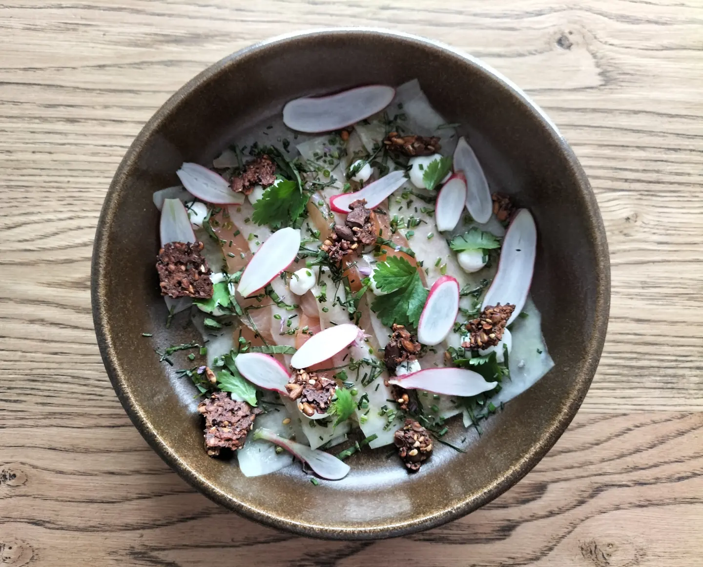 Nous proposons une cuisine locale et engagée accompagnée de vins d’artisans issus de l’agriculture Biologique, biodynamique et vinifiés naturellement.